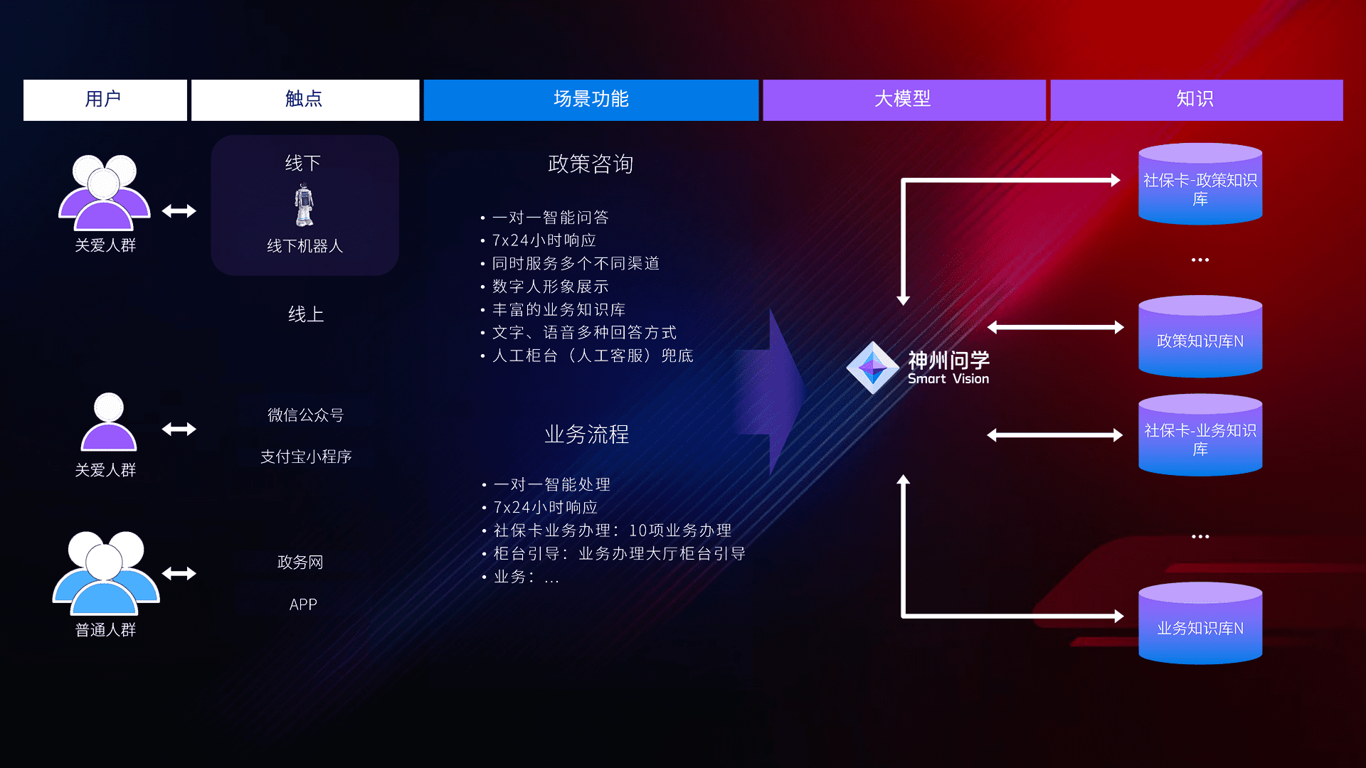 • 线上线下全覆盖:线上提供微信公众号、、支付宝小程序、、、政务网、、app多种渠道,,,与线下机器人形成完整服务体系。。。。